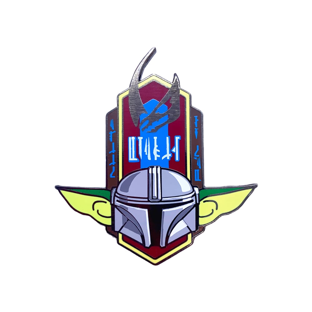 Inspired by everyone's favorite new adopted family in a galaxy far, far away. Featuring the house signet, the mudhorn skull, and inscribed with Mando'a. It reads: DJARIN, ALIIT BE T'AD (which translates to Clan of Two). Forged in hard enamel to fit right in with the rest of your fantasy pin collection.